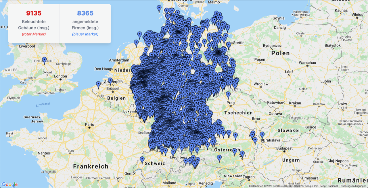 An unserer bundesweiten Protestaktion Night of Light 2020 haben sich über 40.000 Mitwirkende aus mehr als 8.000 Unternehmen beteiligt.