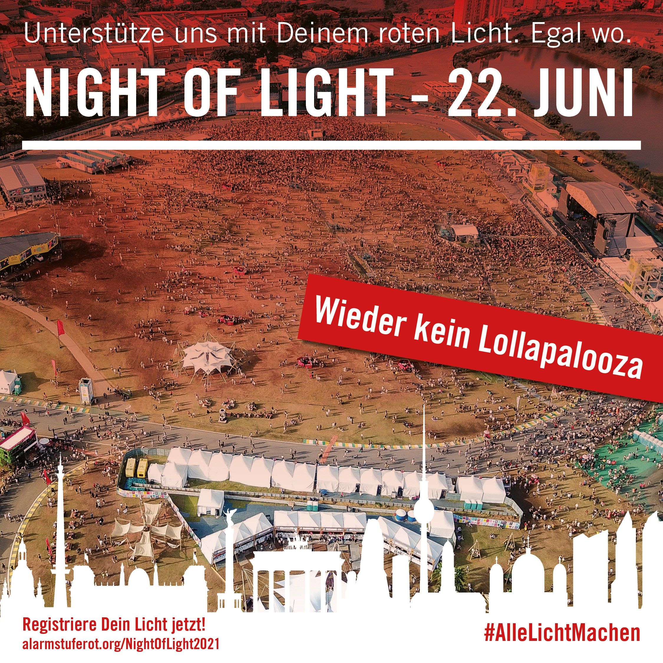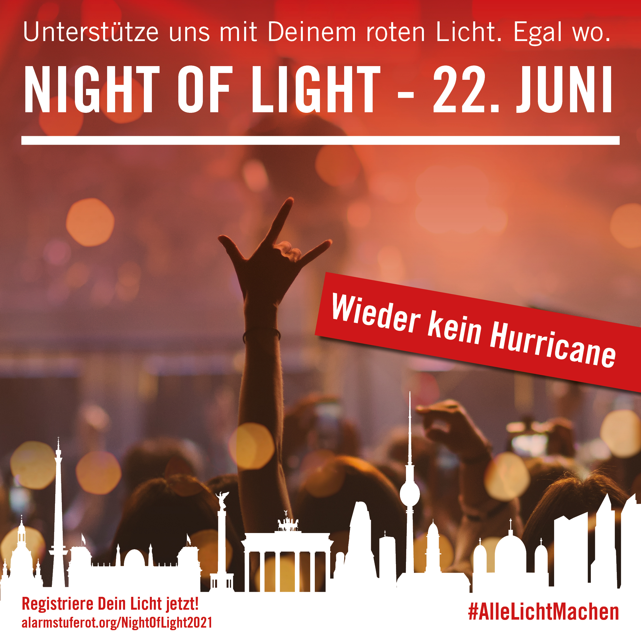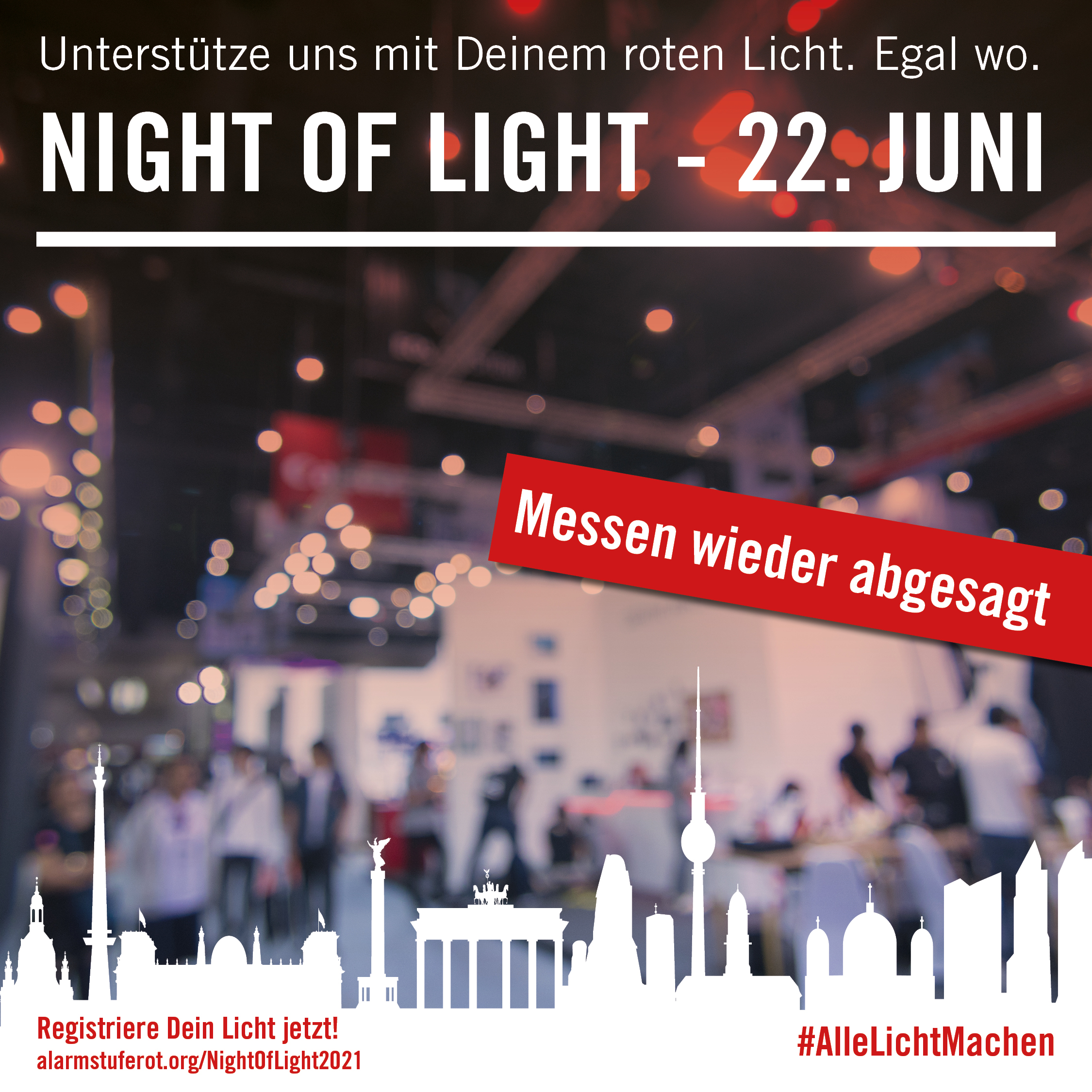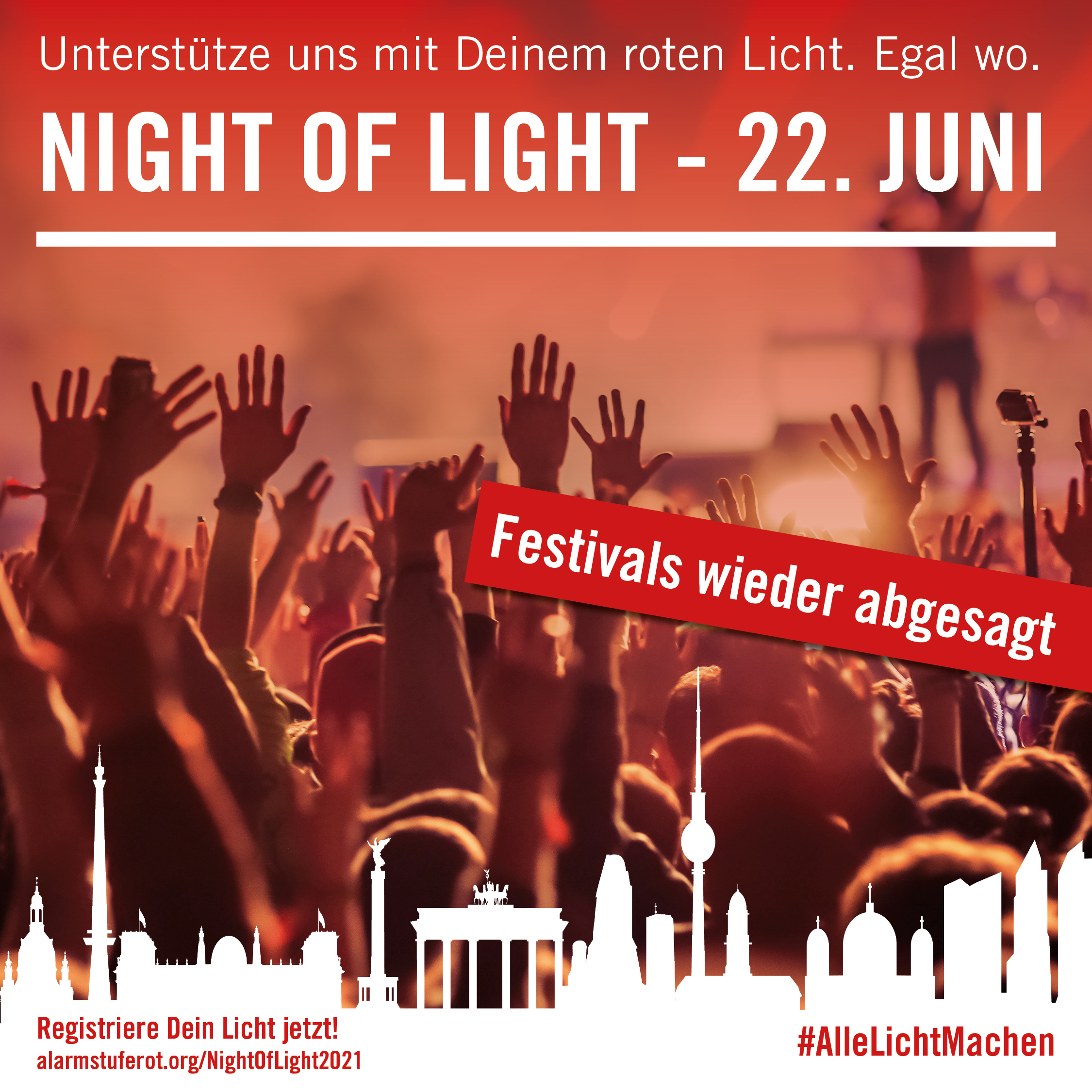 Selbst ein Jahr später gibt es für Veranstaltungsmacher keine Hoffnung, dass es bald wieder losgeht. Die Bevölkerung ist kulturell ausgehungert. Deshalb ist wieder eine Night of Light nötig. Eine, bei der alle Menschen und Institutionen mitmachen, die Veranstaltungen vermissen. Sei es beruflich, sei es privat, sei es kulturell, sei es sozial. Gemeinsam zünden alle ihr Licht an.